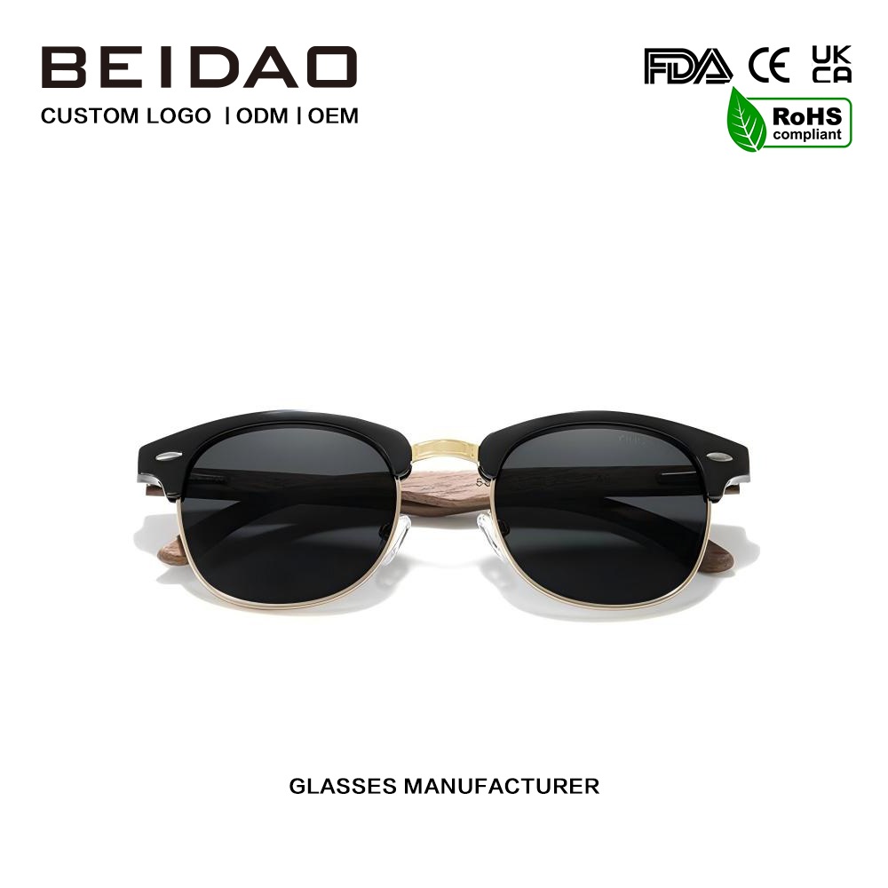 แว่นกันแดดไม้วอลนัทโพลาไรซ์สำหรับผู้ชายรุ่นใหม่ ทำจากโลหะคุณภาพสูงและไม่เสียหายง่าย